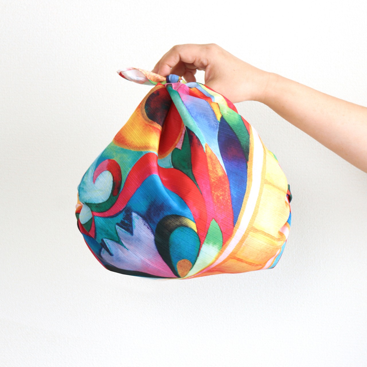 魔除けのお面や像は日本のみならず世界中にたくさんありますよね。見た目は少し怖いけれど悪い事やモノから守ってくれるという安心感につながって可愛く見えてきたりも、、。そんな愛嬌のあるお面を描いてみました。様々なシーンで活躍する風呂敷。小ぶりすぎず大きすぎないサイズです。