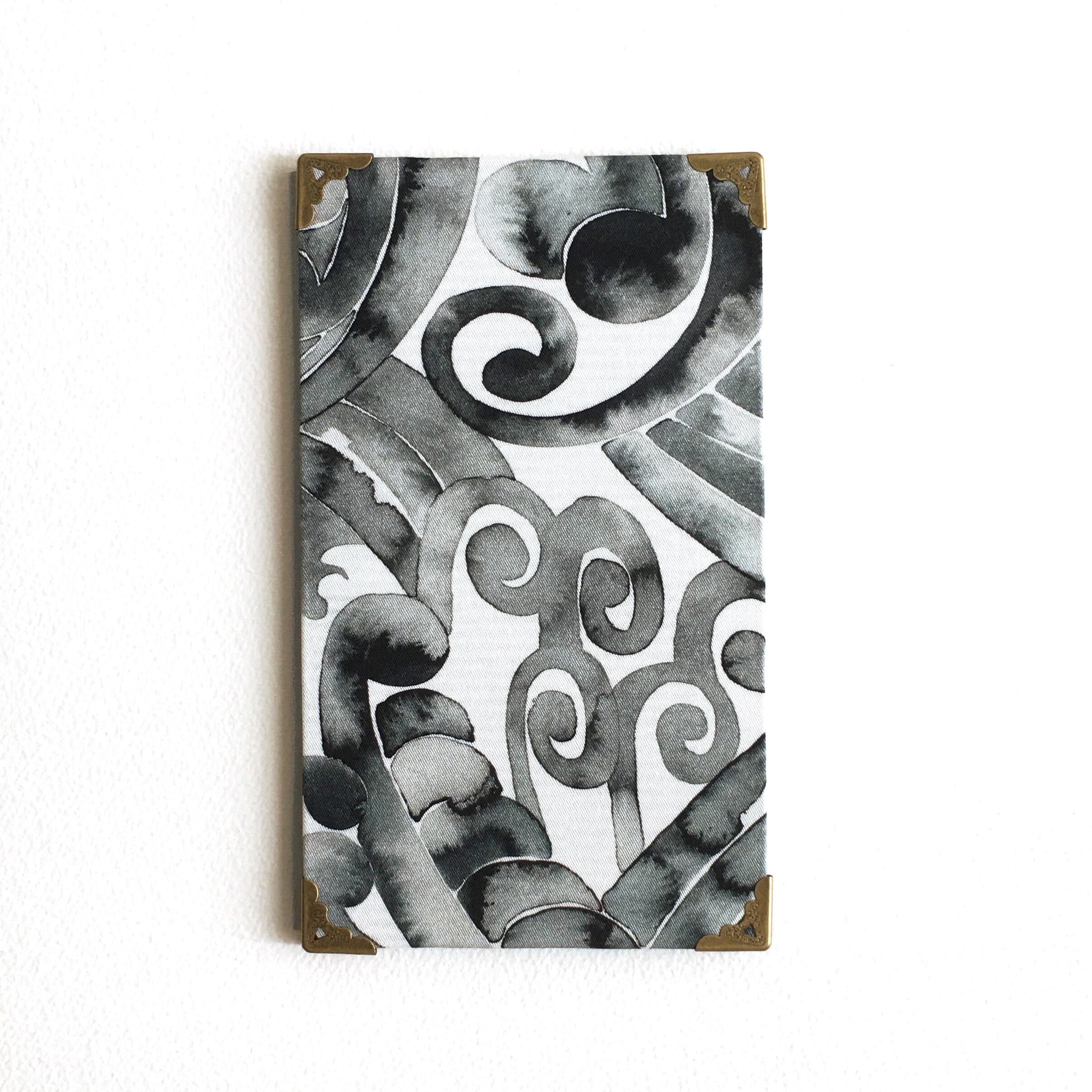 mekuオリジナル柄のファブリックを表紙と裏表紙に使用した薄型ノートです。